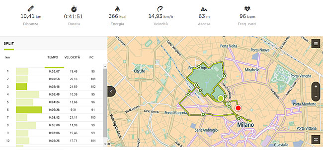 Nella mia prova ho raggiunto e superato i 20 Km/h senza sforzi, come dimostrato anche dai miei battiti cardiaci arrivati al massimo a 102 bpm, rispetto a una media di 96 bpm.