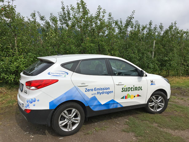 Il buon esempio in ambito di mobilità ecosostenibile arriva anche dalla stessa IDM che per gli spostamenti del proprio staff utilizza auto alimentate a idrogeno, per la precisione 10 autovetture Hyundai ix35 Fuel Cell.