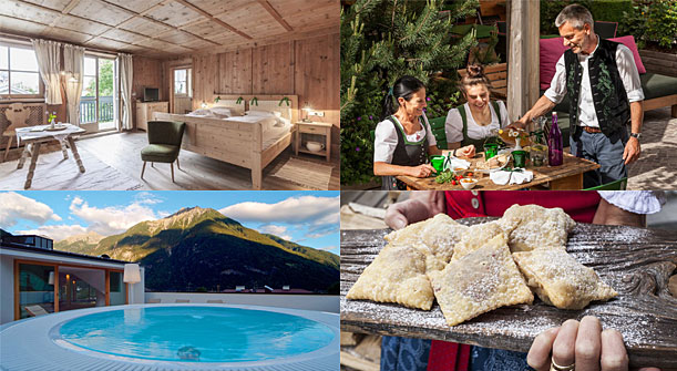 Per quanto riguarda le suite e le camere, il legno è l’elemento naturale dominante. Per assicurare il relax degli ospiti, al terzo piano sono presenti una SPA con sauna, biosauna, sala relax e sale massaggi; al quarto piano, sul tetto, è possibile immergersi in una vasca idromassaggio con vista spettacolare sui boschi circostanti e sul castello di Campo Tures.