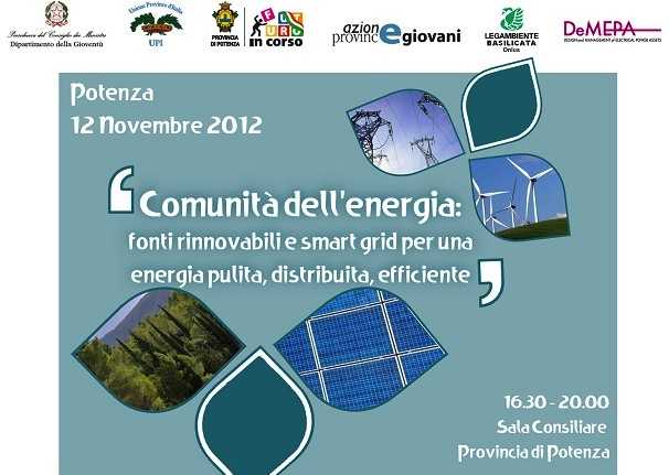 Lo sviluppo energetico rappresenta una buona opportunità per la crescita economica della Basilicata, il territorio può e deve avere un ruolo attivo nella pianificazione e gestione energetica. L’appuntamento di lunedì sarà il primo passo verso le smart Grid. L’incontro avverrà a Potenza, dalle 16:30 alle 20:00, presso la Sala Consiliare della Provincia. L’iniziativa è promossa da Legambiente Basilicata Onlus e DEMEPA Comunità dell’energia.