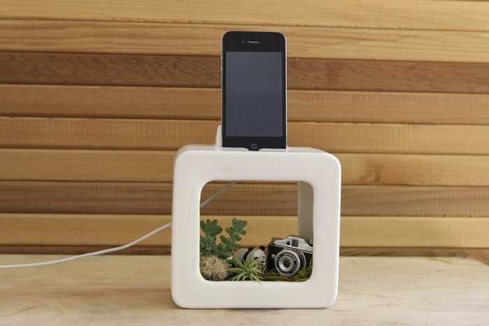 Così da poter caricare l’iPhone e gustarsi un po’ di musica senza privarsi del verde. Il sistema di amplificazione per iPhone funziona senza la necessità di elettricità, il suono è amplificato naturalmente grazie alle forme del box. L’apparecchio è in ceramica ed è disponibili in diversi colori gli standard bianco e nero e in edizione limitata il rosso e celeste.