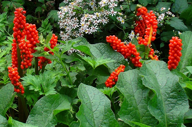 Abbiamo parlato dei fiori ma anche le foglie meritano due parole e con esse anche i frutti. Alta non oltre 80 cm la Calla selvatica è composta da una sorta di colonna centrale da cui spunta il fiore e che è accerchiata dalle foglie, di un colore verde intenso molto interessante per le sue venature biancastre e la lucida superficie. Il frutto della Calla selvatica è una bacca, ne produce tante assieme che si raggruppano in pannocchie e saltano all’occhio per il rosso intenso quando sono mature.