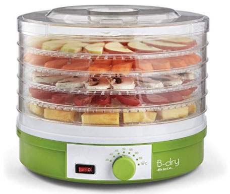 In questa pagina di Amazon trovate ad esempio l’essiccatore e disidratatore proposto da Ariete con una potenza di 245 Watt e temperature regolabili tra 35° e 70°.