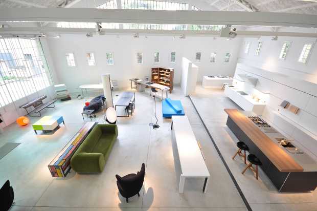 L’idea è della showroom bulthaup a Padova, Eurema Interni, e la location è un cortile interno in una suggestiva zona residenziale, di fronte alla storica Porta Santa Croce attraverso cui si arriva a Prato della Valle. Le caratteristiche architettoniche principali rendono lo spazio lo scenario ideale per ospitare eventi culturali e cucine che sembrano installazioni: la grande altezza interna di 7 metri lineari con copertura a volta in travi di calcestruzzo, tipica della costruzione industriale, fa pensare a un teatro, un’ampia vetrata ad arco, che si apre su due bellissimi cedri del Libano, insieme alle tante piccole finestre, inondano il luogo di una sorprendente luminosità, due imponenti portoni da officina con apertura a libro creano una totale relazione con lo spazio esterno.