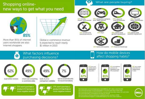 Ma è vero che sta cambiando il modo di fare la spesa? Una ricerca di Dell conferma di sì e che oggi l’85% di chi naviga in Internet fa anche la spesa online, almeno ogni tanto. È sbagliato però pensare che le due cose procedano di pari passo, tanto aumenta la diffusione di Internet e tanto aumenta gli acquirenti online, perché il cambiamento di abitudini portato dai ‘nativi digitali’ e la crescente diffusione di smartphone e tablet fanno da acceleratore all’e-commerce. La previsione di Dell è che i ricavi globali del commercio elettronico toccheranno il miliardo di dollari a fine 2013, superata quella soglia la corsa non avrà più freni.