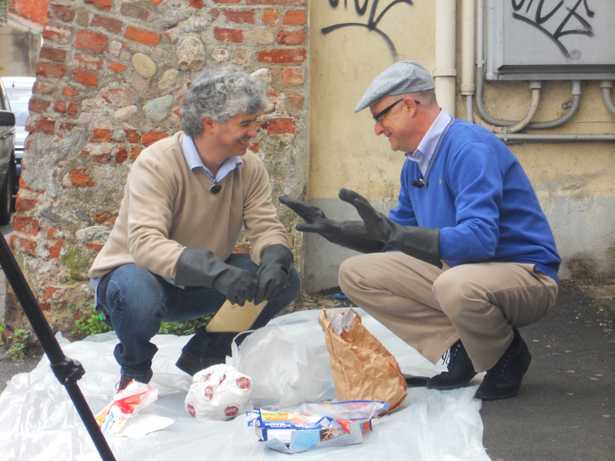 Dopo la scrittura della sceneggiatura, realizzata a quattro mani con Marco Domenicale, insieme al regista albese Emanuele Caruso, abbiamo intrapreso il percorso. Siamo partiti da Chivasso, in auto, verso varie realtà: il Consorzio dei Navigli in Lombardia, il Comune di Capannori e la strategia Rifiuti Zero, il riciclo della plastica di Revet a Pontedera in Toscana, ad esempio. A Roma, poi, abbiamo conosciuto l’attivista ambientale Dario Tamburrano che fa il compostaggio sul terrazzo di casa e realizza in casa detersivi con prodotti naturali. Proseguendo abbiamo conosciuto le pratiche del riciclo della carta, realizzato in Campania, o il compostaggio di comunità a Cuccaro Vetere nel Parco del Cilento, per poi risalire al nord per visitare realtà come Vercelli, Ronsecco o l’impianto di compostaggio di Santhià e realtà virtuose come il Comune di Dogliani o la Cooperativa ERICA, che ha intrapreso il cammino per diventare la prima azienda italiana a rifiuti zero entro il 2020.