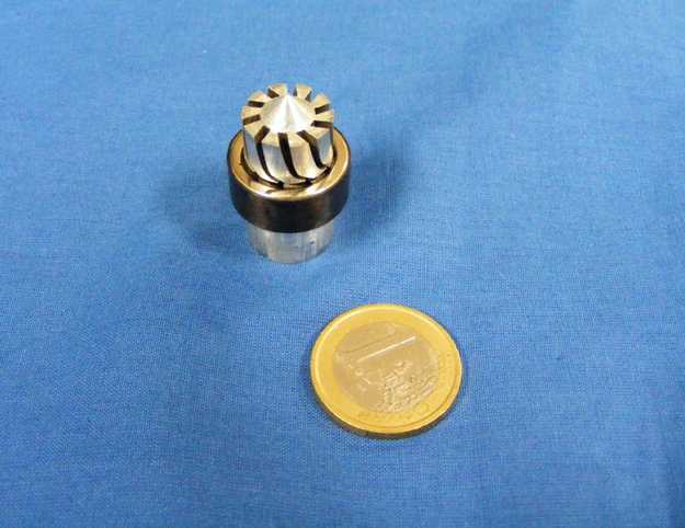 La microturbina è un generatore portatile di energia miniaturizzato (il suo diametro è di 14 mm) e integrato ispirato alla tecnologia delle turbomacchine.
