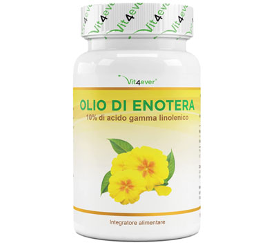 Si tratta del flacone da 365 capsule ad alto dosaggio di olio di enotera prodotte da Vit4Ever, società specializzata in integratori di qualità.