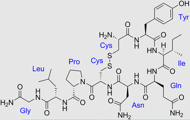 La formula bruta o molecolare dell’Ossitocina è la seguente: C43H66N12O12S2.