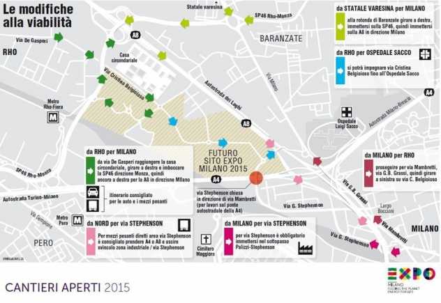 La società Expo 2015 SpA, insieme al COmune di Milano e gli altri Comuni interessati, hanno collaborato per ideare una soluzione strategia per deviare il traffico e consentire un flusso scorrevole. Con la chiusura del ponte, è nata la necessità di allestire una nuova segnaletica e smistare mezzi pubblici, privati e pendolari. Per questo vi rimandiamo alle direttive del Comune di Milano.