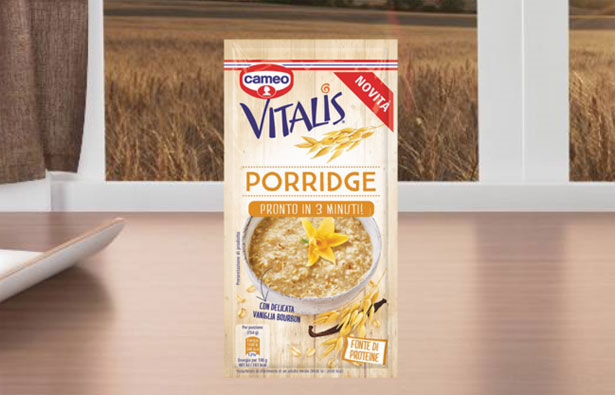 Il nuovo Vitalis Porridge Classico cameo è dolcificato esclusivamente con sciroppo d’agave e possiede un buon bilanciamento nutrizionale tra carboidrati, grassi e proteine perciò, se gustato insieme ad un frutto e/o della frutta secca, è ideale per una colazione equilibrata! Inoltre, bastano solo 3 minuti per prepararlo e gustare una golosa colazione, trendy e fonte di proteine!