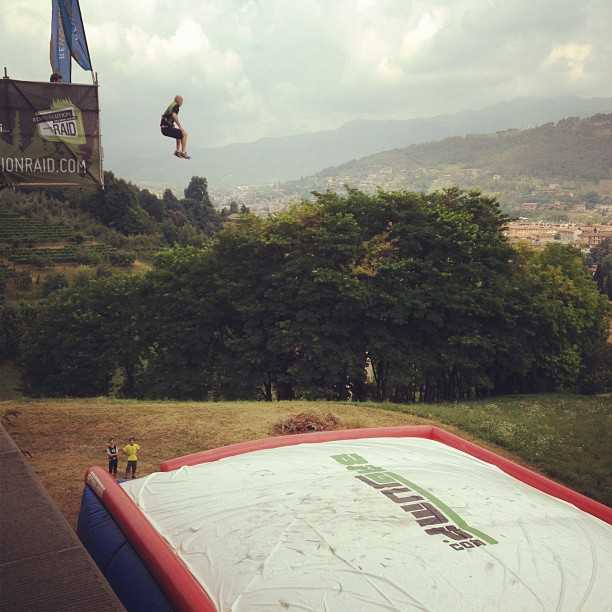 La seconda prova era decisamente la più adrenalinica: “Bag Jump“, ovvero salto nel vuoto dalle mura della Città Alta per atterrare 15 metri più sotto su un apposito materasso gonfiabile. Decisamente per “cuori forti”!