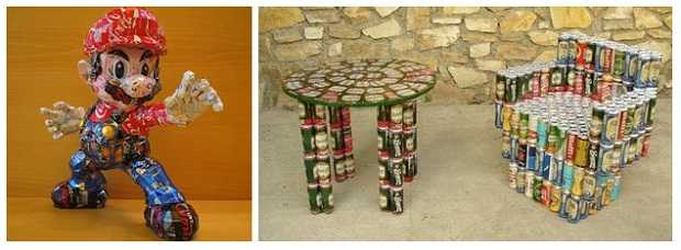 Uno scultore è riuscito a creare delle statue in miniatura che ripropongono i personaggi di Star Wars, Batman, Super Mario Bross, Toy Story e di tanti altri personaggi di cartoni animati o del mondo della fantascienza o del mondo animale. Nella collezione non mancano quadri realizzati con la stessa modalità. Le sue idee possono essere facilmente imitabili. Si tratta di raccogliere lattine, schiacciarle o aprirle, tagliarle come se fosse carta.