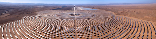 Attorno alla torre sono presenti 7400 superfici riflettenti, piazzate su piattaforme alte dieci metri, ognuna grande come un campo da tennis, in grado di inclinarsi per dirigere i raggi del sole con la giusta angolazione. Il campo solare si estende per 550 ettari e complessivamente è addirittura grande tanto quanto Rabat, la capitale marocchina. Qual è l’obiettivo del Marocco? Dimezzare il costo dell’energia per kWh e in futuro ridurlo a meno di 1/4. Oggi infatti il Regno paga ben 30 centesimi/kWh (kilowattora) per il suo fabbisogno energetico, mentre stringendo accordi con la società che gestisce l’impianto lo pagherà 15 centesimi. Successivamente, quando la centrale entrerà a pieno regime il costo previsto dovrebbe scendere a 7 centesimi/kWh. Lo scopo è trasformare il Marocco in un paese indipendente dai combustibili fossili e in uno dei più grandi esportatori di energie rinnovabili, le quali saranno vendute attraverso lo stretto di Gibilterra dal porto di Tangeri.