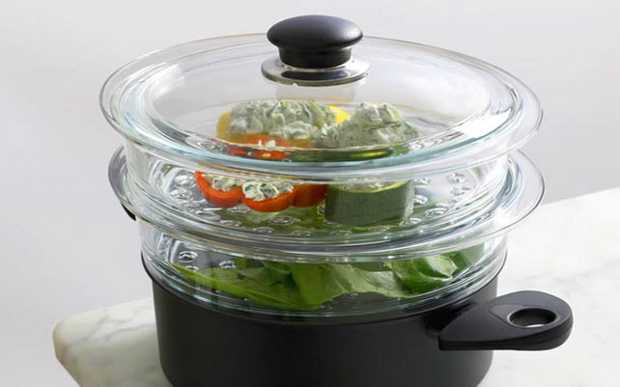 È la più dietetica delle modalità di cottura perché non prevede l’aggiunta di grassi e preserva al meglio le proprietà nutritive dei cibi. Certo non è stuzzicante come una bella frittura o un succoso arrosto, ma usando bene erbe e aromi anche il palato avrà la sua parte. A vapore si possono cuocere verdure e ortaggi freschi, pesci poco spessi o filetti di pesce, ma anche carne tagliata a fette sottili.