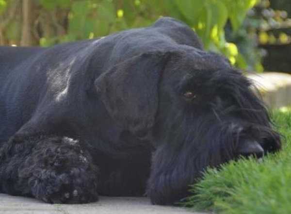 Schnauzer gigante, una razza che arriva dalla Germania e prende lì il nome di Riesenschnauzer che poi, nella nostra lingua, significa “mustacchi”: è il modo con cui venivano chiamati i “baffi” in Baviera. Se si guarda bene in faccia, in muso, lo Schnauzer gigante, si capisce che il nome è azzeccato.