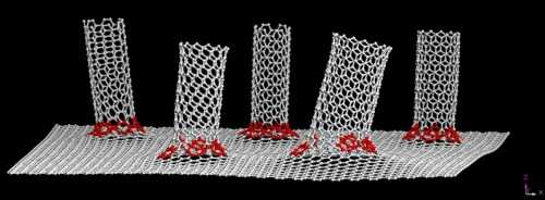 Altri ricercatori hanno provato a “incorporare” i nanotubi di carbonio in un elettrodo metallico. I tentativi non hanno mai prodotto risultati promettenti proprio a causa delle giunzioni tra nanotubi ed elettrodo: il nanotubo nell’interfacciarsi con l’elettrodo metallico creava una barriera elettronica. Nel modello della Rice University si può osservare un elettrodo metallico (rame) sul quale si ergono nanotubi di grafene. Le due differenti componenti sono tenute adese tra loro grazie a un legame di natura chimica, ciò significa che gli elettroni potranno continuare il loro flusso senza difficoltà.