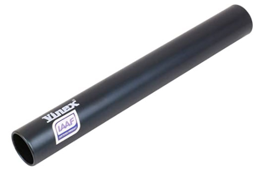 Questo testimone è prodotto dall’azienda Vinex, ha una lunghezza di 29,5 cm e pesa 67 grammi, rispettando le misure fissate dal regolamento IAAF.