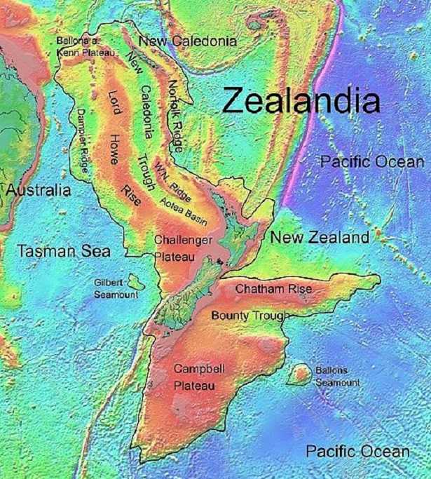 Lo chiamiamo continente, non considerandolo quindi una terra sommersa come le altre, perché ha la particolarità di essere un singolo, intatto e uniforme pezzo di crosta continentale di 5 milioni di km quadrati. Noi vediamo il 6% che affiora, la Nuova Zelanda e la Nuova Caledonia, ma è composto da: Nuova Zelanda, Nuova Caledonia, Plateau Campbell, Chatham Rise, Lord Howe Rise, Plateau Challenger e Norfolk Ridge.