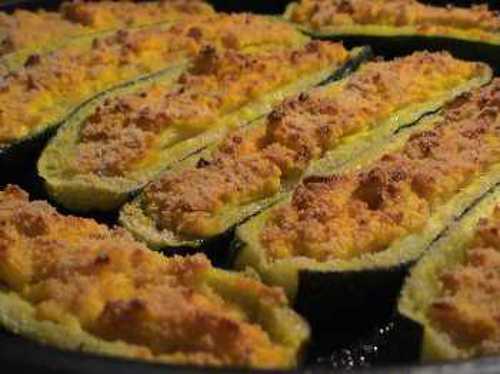 Le zucchine vanno lavate e tagliate a metà: servitevi di un coltello affilato per svuotarle e conservate a parte la polpa. Una volta svuotate, lessate le zucchine in poca acqua per ammorbidirle e scolatele mettendole da parte. Fate rosolare lo scalogno tritato nell’olio, aggiungete la polpa delle zucchine, le erbe tritate e lo zafferano precedentemente sciolto in poca acqua calda. Aggiungete il pangrattato tenendone da parte un poco, il parmigiano grattugiato e regolate di sale e di pepe. A questo punto accendete il forno, disponete le zucchine in una teglia leggermente unta e riempite con il composto ottenuto. Usate il pangrattato rimasto per spolverizzare il tutto alla fine. Infornate a 180° fino a che le vedrete dorate.